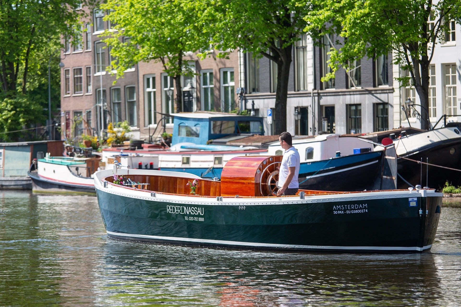 All ships of Rederij Nassau, Amsterdam Boats and Amsterdam Boat Experience are electrically powered. You do not hear the engine and are not bothered by unpleasant odors! All ships have one or more toilets on board. In addition to a skipper, there is always at least 1 host or hostess on board to provide the guests with a drink and snacks.